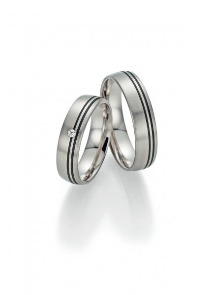 Diese Ringe sorgen für Aufsehen. Futuristische und einzigartige Ringe in 585 Graugold und Carbon. Carbon ist extrem leicht, so dass auch stärkere, breite Ringe ein erstaunlich niedriges Gewicht aufweisen. Das Material ist äußerst beständig gegen Chemikalien und Temperaturschwankungen und zeigt beim Tragen zudem kaum Abnutzungserscheinungen. 1 Brillant 0,025 ct. TW/SI. Breite 5,50 mm.