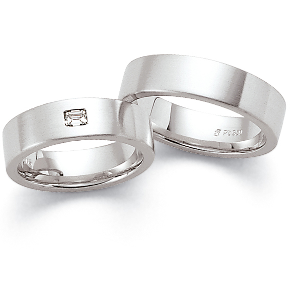 Platin - die Königslegierung unter den Edelmetallen. Zeitlos, wertig und unvergessen. Manufaktur Fischer - Deutschland. Edle Trauringe in 950 Platin seidenmatt aus der Pforzheimer Manufaktur. Eine Firma mit Tradition und gutem Preis-Leistungsverhältnis. 1 Baguette - Diamant 0,145 ct. TW/VVSI. Breite 6,00 mm.