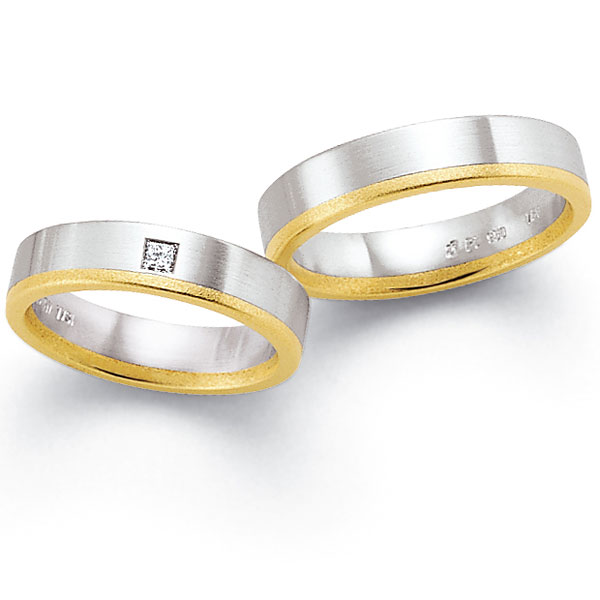 Manufaktur Fischer - Deutschland. Edle Trauringe in 950 Platin kombiniert mit 750 Gelbgold seidenmatt und poliert aus der Pforzheimer Manufaktur. Eine Firma mit Tradition und gutem Preis-Leistungsverhältnis. 1 Baguette - Diamant 0,08 ct. TW/VVSI. Breite 5,00 mm.