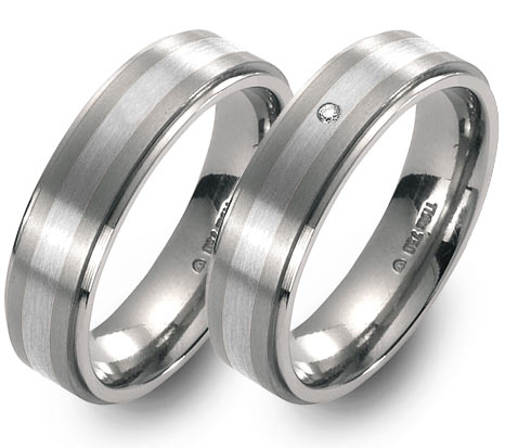 Titan Factory. Produktion aus Schwäbisch Gmünd - Deutschland. Titan rostet nicht und ist absolut allergineutral und hautfreundlich. Und absolut Nickelfrei. Trauringe aus Titan - 950 Platin seidenmatt und poliert. 1 Brillant 0,015 ct. W/SI. Breite 6,00 mm.