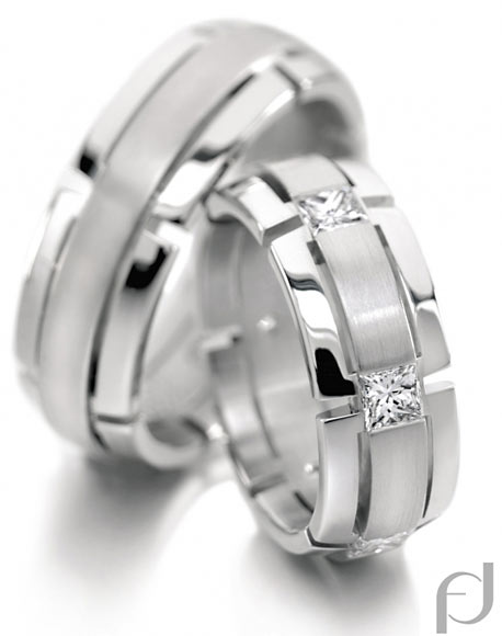 Begeisternde Trauringe in 950 Platin seidenmatt und poliert. So wie der Anzug des Bräutigam oder das Kleid der Braut, müssen die Trauringe sorgsam ausgesucht sein. Damenring 1 herrliche Prinzess - Diamanten zusammen 0,20 ct. TW/VS. In jedem Ring ist ein Innenbrillant 0,01 ct. TW/VS gefasst. Breite 7,50 mm. Sonderpreis gilt nur für Weissgold mit einem Stein . Sollten Sie eine andere Legierung oder Steinbesatz wünschen , dann bitte in Kontakt treten .