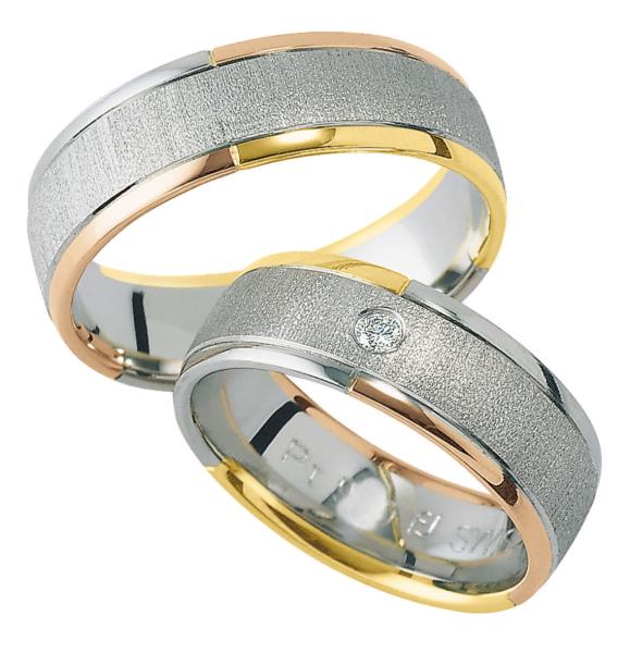 Schmeichelnde Trauringe im bengalisches Feuer in 950 Platin - 750 Rot-Gelbgold satiniert und poliert. 1 Brillant 0,03 ct. TW/VS. Breite 6,50 mm. Aus der 150 Jahre alten Manufaktur Furrer Jacot aus der Schweiz. Am Standort Schaffhausen werden reizende Verlobungsringe und gemusterte Trauringe individuell gefertigt. Wählen Sie eine Gravur von den außergewöhnlichen Schriftarten aus.