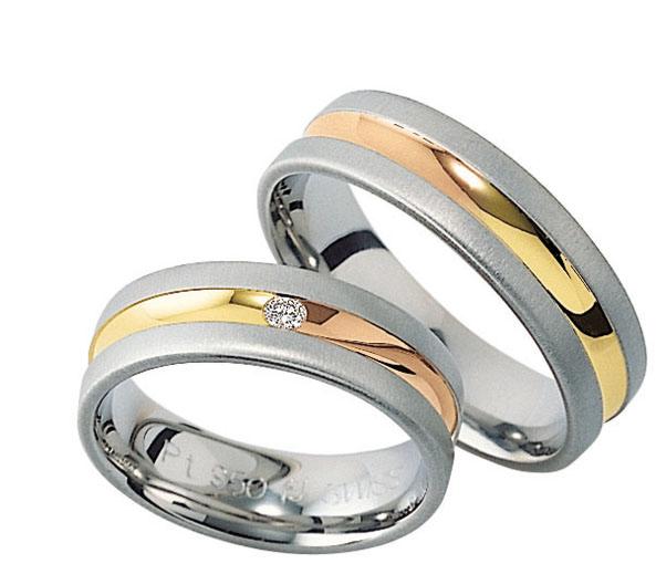 Schmeichelnde Trauringe im bengalisches Feuer in 750 Weissgold-Rotgold-Gelbgold satiniert und poliert. 1 edler Brillant 0,035 ct. TW/VS. Breite 6,00 mm. Aus der 150 Jahre alten Manufaktur Furrer Jacot aus der Schweiz. Am Standort Schaffhausen werden reizende Verlobungsringe und gemusterte Trauringe individuell gefertigt. Wählen Sie eine Gravur von den außergewöhnlichen Schriftarten aus.