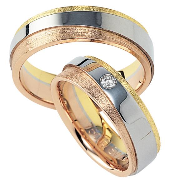 Schmeichelnde Trauringe im bengalisches Feuer in 750 Weissgold-Rotgold-Gelbgold poliert und seidenmatt. 1 Brillant 0,04 ct. TW/VS. Breite 6,00 mm. Aus der 150 Jahre alten Manufaktur Furrer Jacot aus der Schweiz. Am Standort Schaffhausen werden reizende Verlobungsringe und gemusterte Trauringe individuell gefertigt. Wählen Sie eine Gravur von den außergewöhnlichen Schriftarten aus.