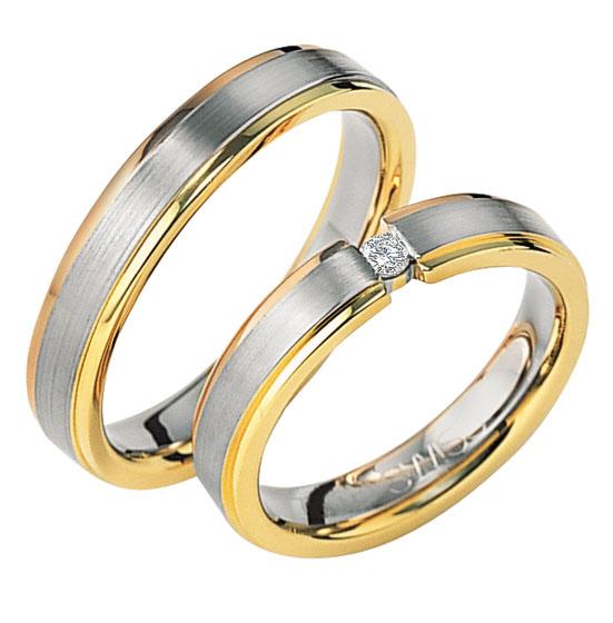 Schmeichelnde Trauringe im bengalisches Feuer in 750 Weissgold-Rotgold-Gelbgold poliert. 1 wertiger Brillant 0,05 ct. TW/VS. Breite 4,00 mm. Aus der 150 Jahre alten Manufaktur Furrer Jacot aus der Schweiz. Am Standort Schaffhausen werden reizende Verlobungsringe und gemusterte Trauringe individuell gefertigt. Wählen Sie eine Gravur von den außergewöhnlichen Schriftarten aus.